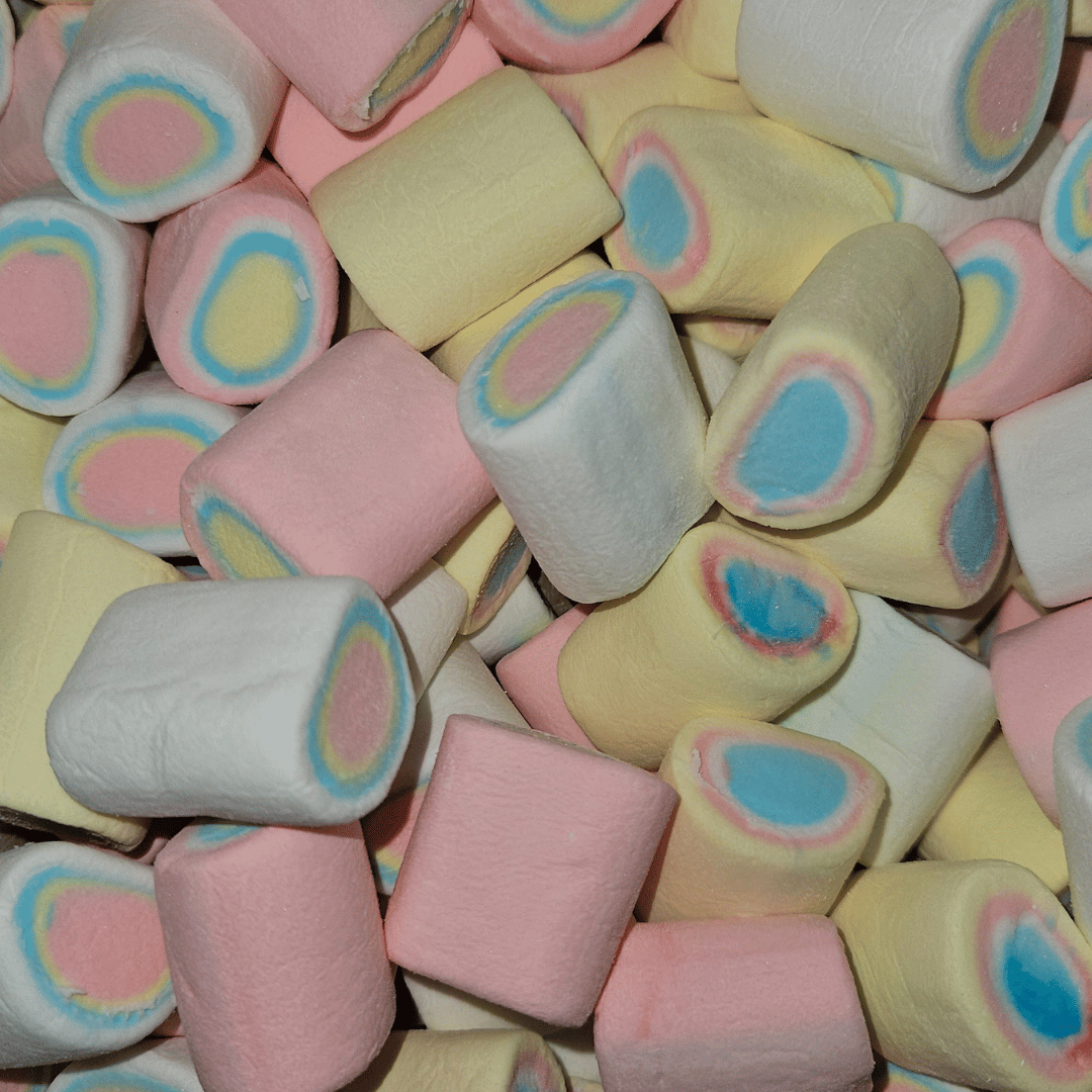 A moreish 100g bag filled with rainbow tube squishy and delectable marshmallows.